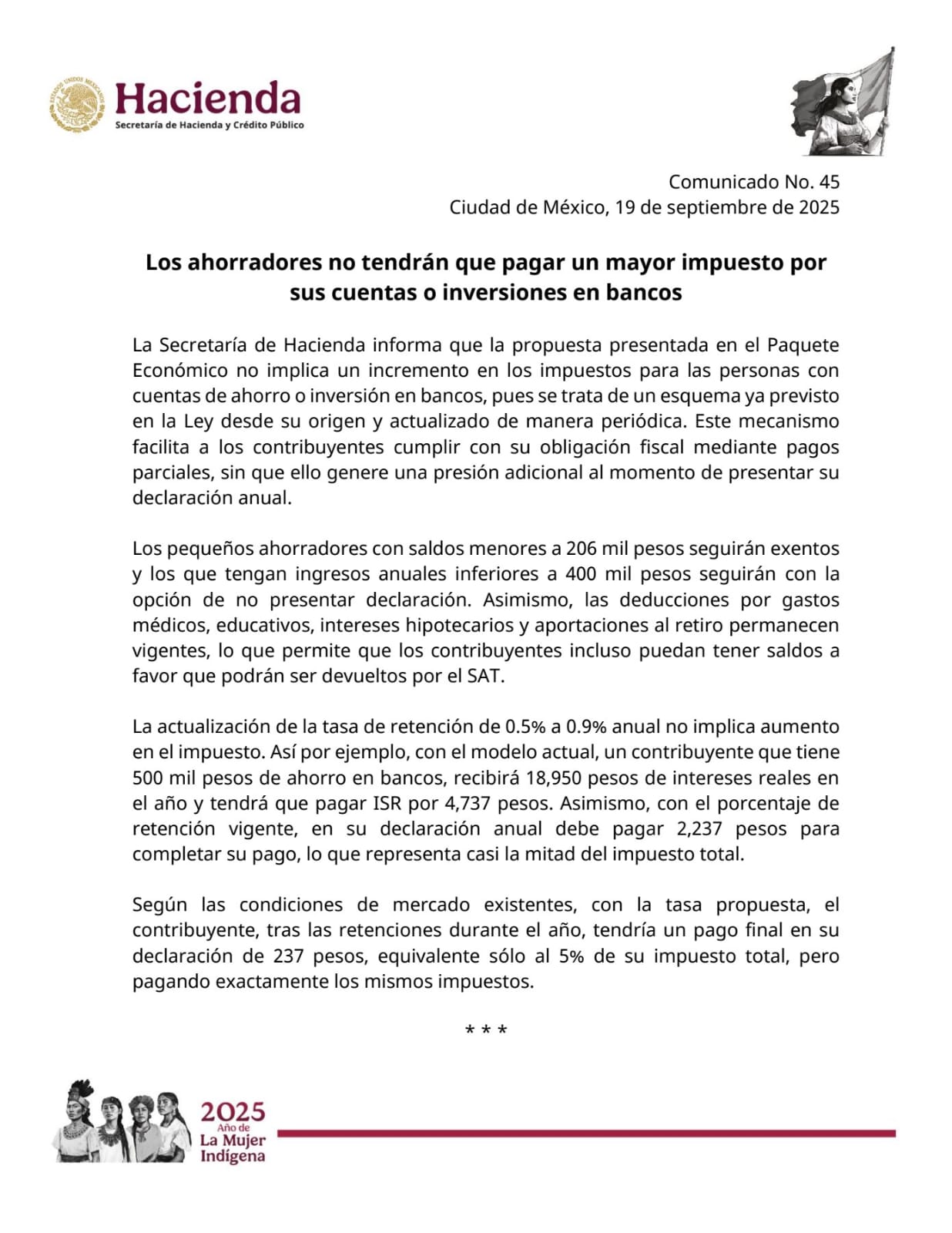 Desde el ángulo positivo, la medida contribuye a estabilizar los ingresos públicos, asegura flujo constante y reduce la evasión. Además, se mantiene la protección a pequeños ahorradores: quienes tengan saldos menores a 206 mil pesos o ingresos anuales inferiores a 400 mil seguirán exentos de presentar declaración. También permanecen vigentes las deducciones por gastos médicos, educativos, intereses hipotecarios y aportaciones al retiro.